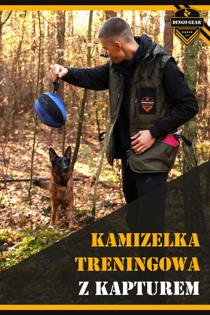 Universal, all-season training vest. A multifunctional product designed for both amateurs and professionals involved in dog training. The combination of strong and tear-resistant polyester with a spacer mesh on the inside allows the entire structure to breathe. Fasteners in the form of YKK ankle zippers guarantee the reliability of this element as well. The adjustable waistband stabilizes the vest during intense movements. It can be worn both over a t-shirt and a thick warm jacket (all-season) The vest is equipped with easily accessible pockets, a through pocket on the back with a very practical system of increasing the capacity of the pocket (any guide will appreciate this solution) an inside pocket with a slot for headphone cord, two chest pockets with snaps and a special handle that allows you to quickly give the chew to your dog. We made it by hand, taking care of every detail to ensure the proper comfort of the dog handler's work. The functional cut and practical solutions make the vest an ideal choice for any activity with a dog (training, sports, walking, etc.)