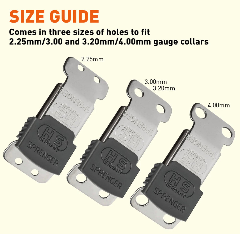 • THREE SIZES AVAILABLE TO FIT ANY HERM SPRENGER PINCH COLLAR - The buckle body is the same size but holes are specifically designed to fit 2.25mm, 3mm/3.2mm and 4mm collars.