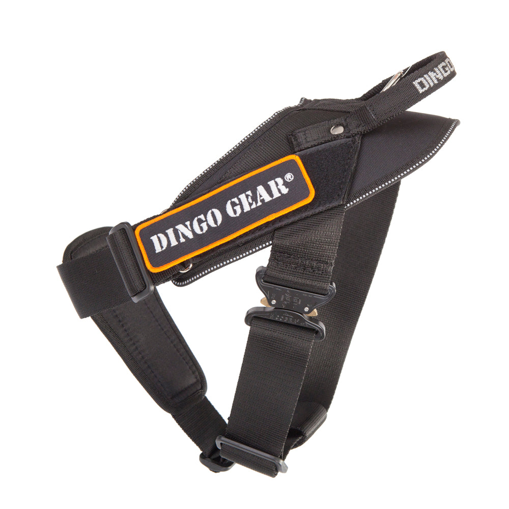The multifunctional SYSTEM COBRA harness for work and training K9 is extremely strong and durable. The ergonomic construction of the harness, wide tightening straps, and a cushion on the chest provide the dog with great comfort while tracking, working on a track, searching for drugs, explosives, or during defense training. Strong buckle, the so-called COBRA AUSTRIALPIN, a renowned Austrian company (used by mountaineers for climbing), guarantees reliability during use. The harness allows you to lead the dog on a rope, leash, or with a special built-in handle. We made them by hand with very high accuracy so that they could be used for any large breed dog, e.g. German or Belgian Shepherd. These professional harnesses will meet the expectations of the most demanding trainers.