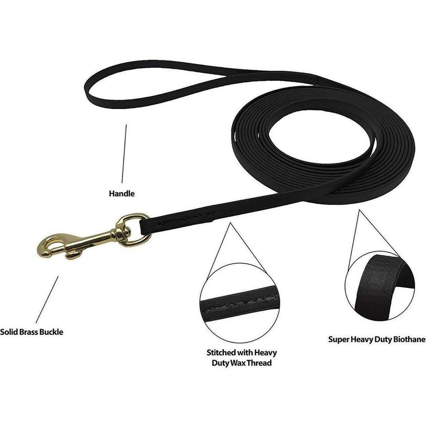 Lead with purpose with the Biothane Dog Leash. This robust webbed dog lead is specially coated to emerge from even the swampiest environments, dry and smell-free, without loss of flexibility. !!! NOT TO BE USED FOR TIE-OUT!!!