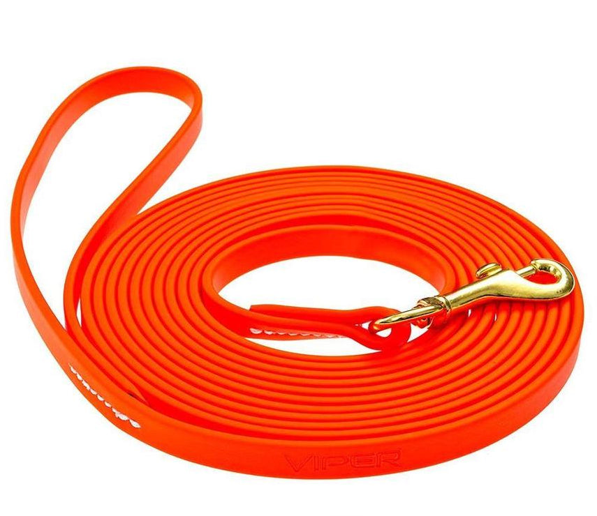 LEAD WITH PURPOSE with the Viper Biothane Dog Leash. This robust webbed dog lead is specially coated to emerge from even the swampiest environments, dry and smell-free, without loss of flexibility. !!! NOT A CHEW-PROOF MATERIAL, NOT TO BE USED FOR TIE-OUT!!!