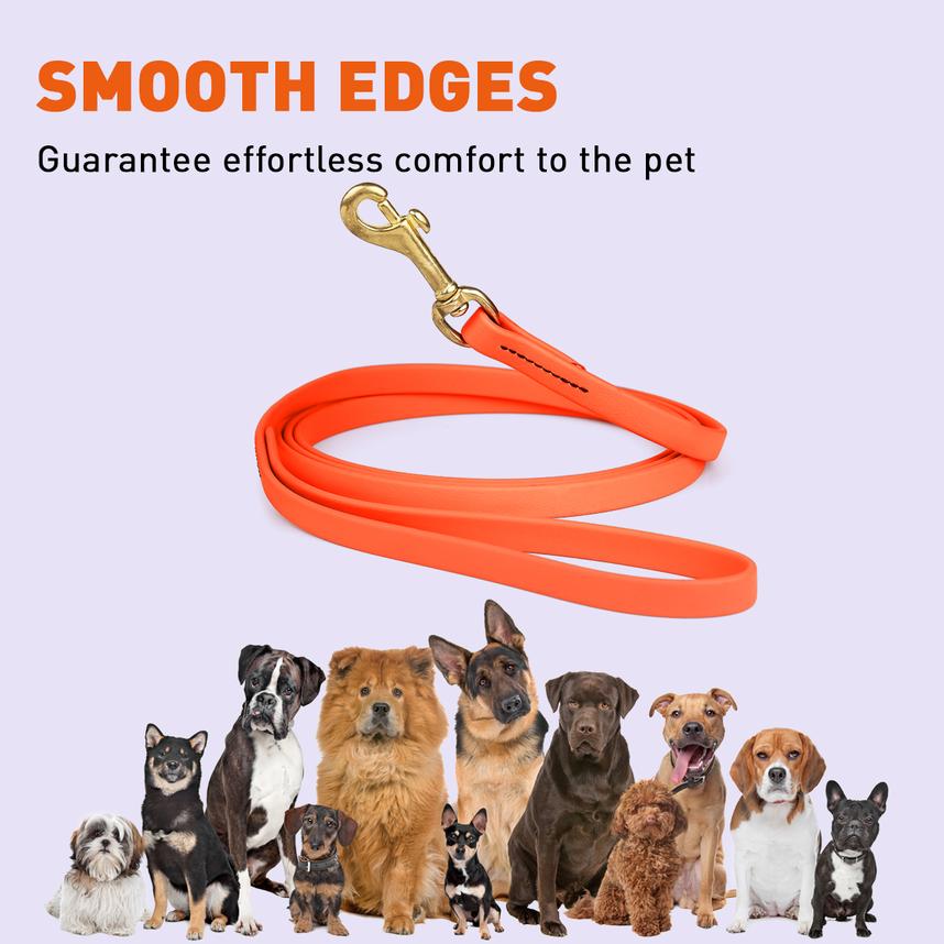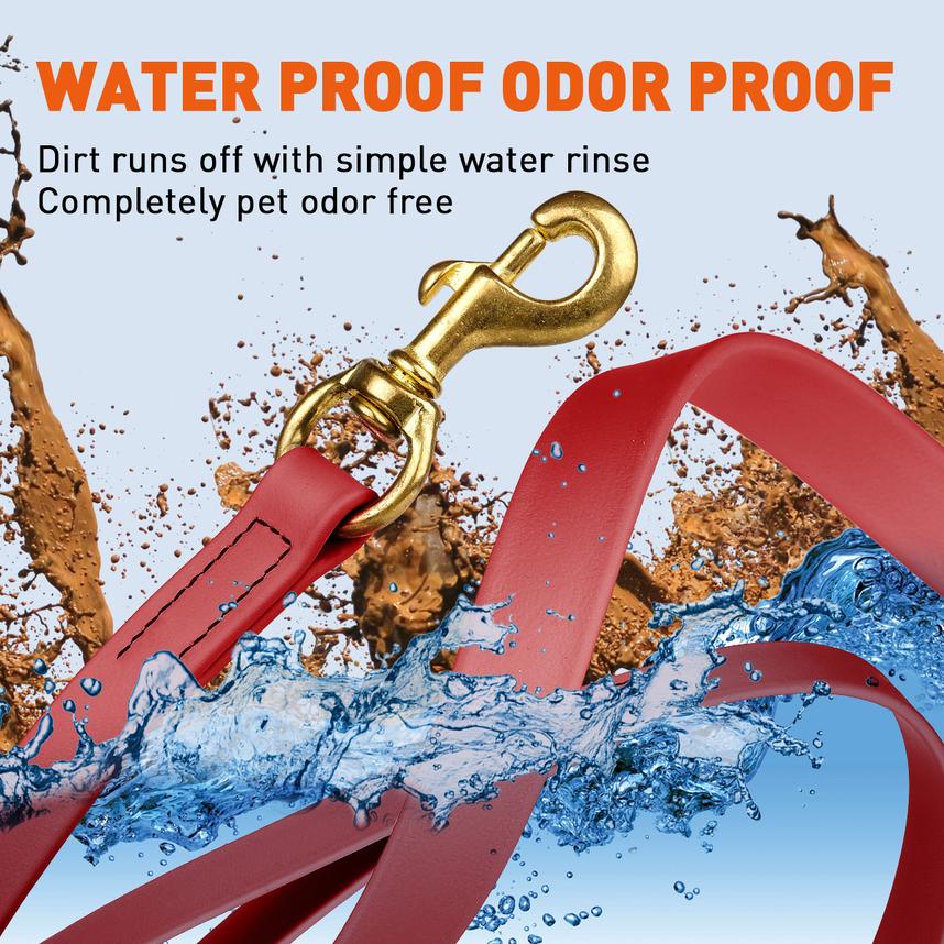 • MORE DURABLE than leather dog leashes, the Biothane dog leash boasts a flexible substrate core bonded with a waterproof coating, perfect for environs where strength and cleanliness are crucial.