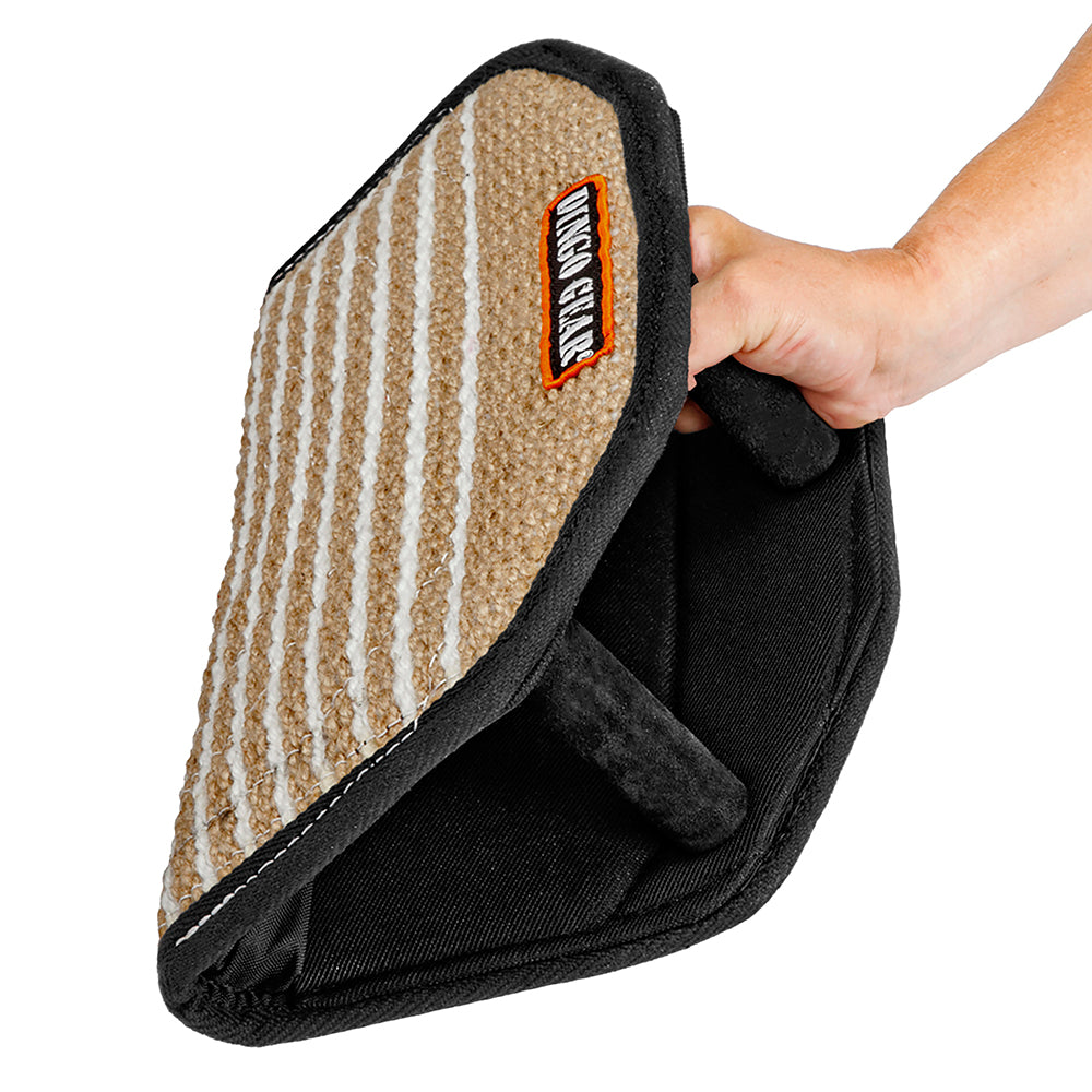 GIZMO bite wedge made of a friendly material such as jute with the addition of polypropylene. Designed to work on the correct grip of the dog and learn to bite. It helps to develop instincts and form the grip of the quadruped. Used by trainers to train puppies, young and adult dogs. It is resistant to biting, dirt, and has a high modulus of elasticity. Handcrafted with great attention to every detail to make it safe for the dog and the helper. Suitable for both right and left hand.