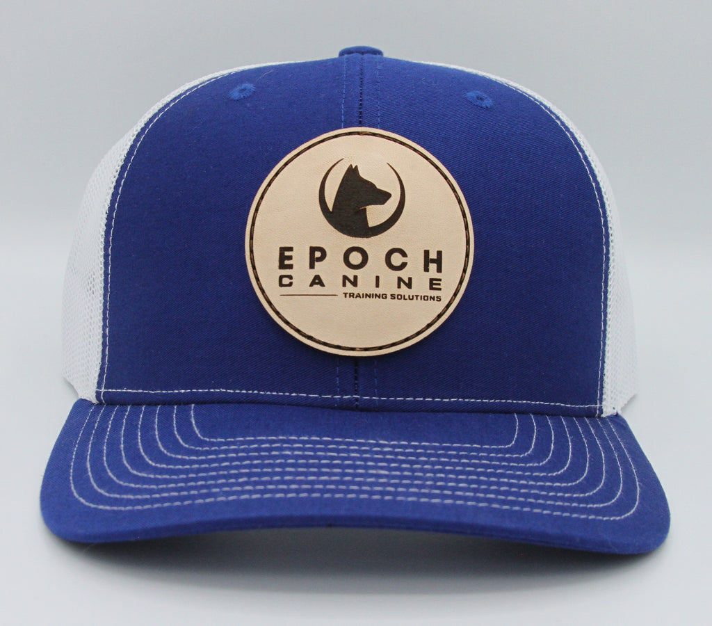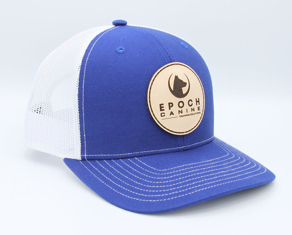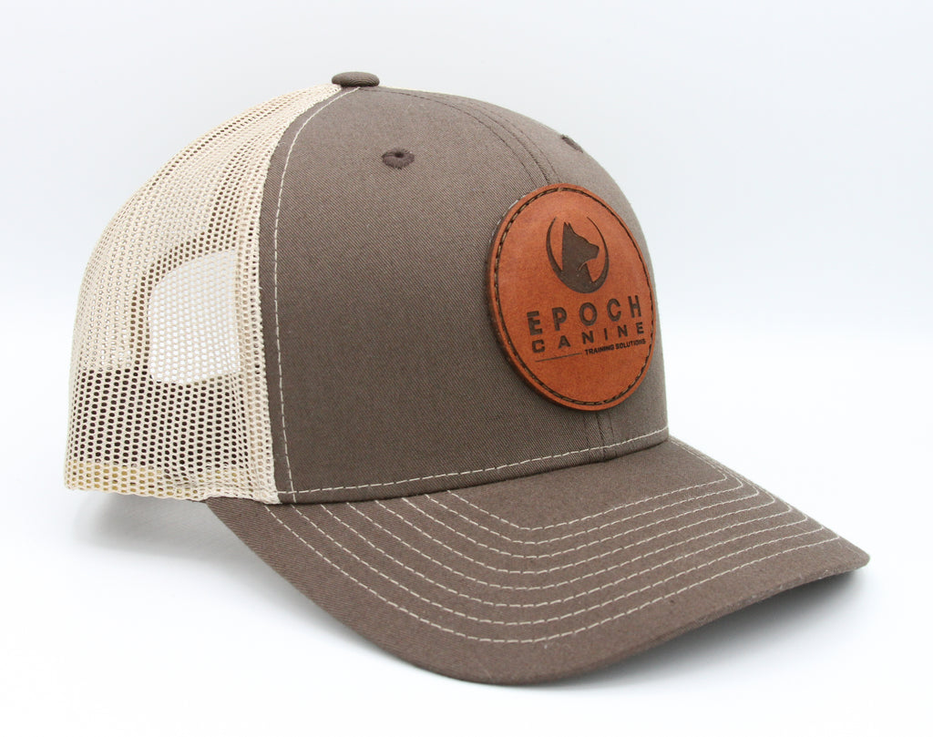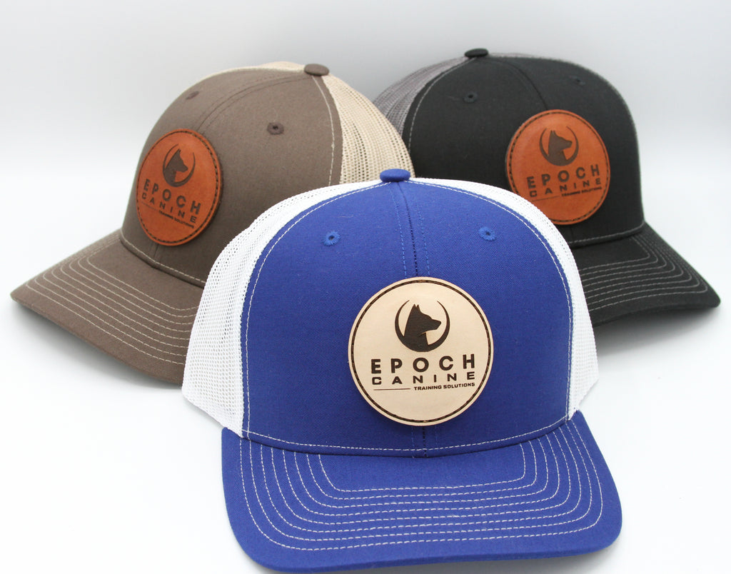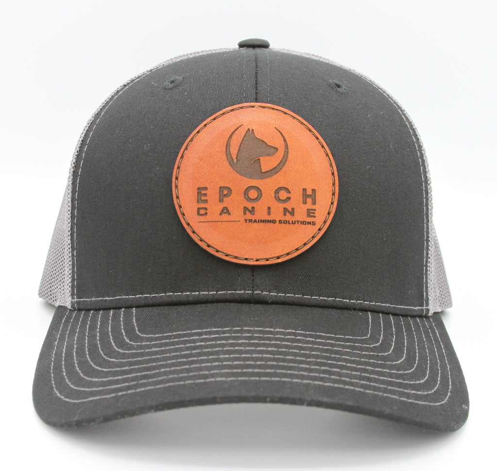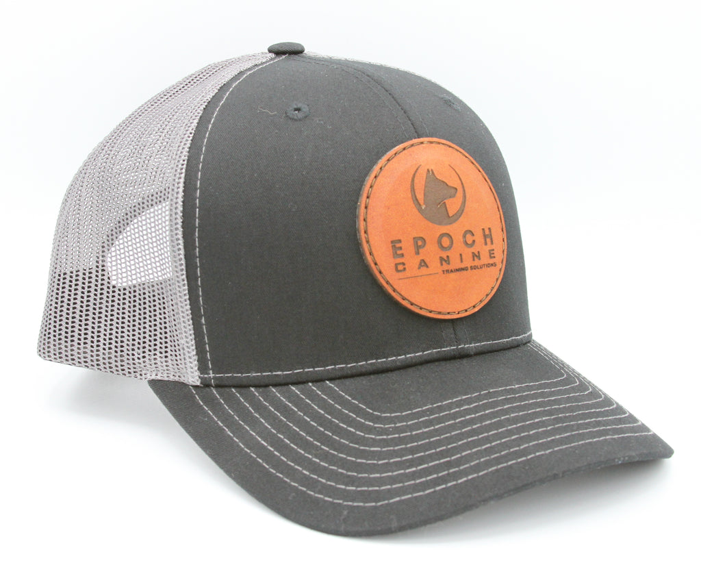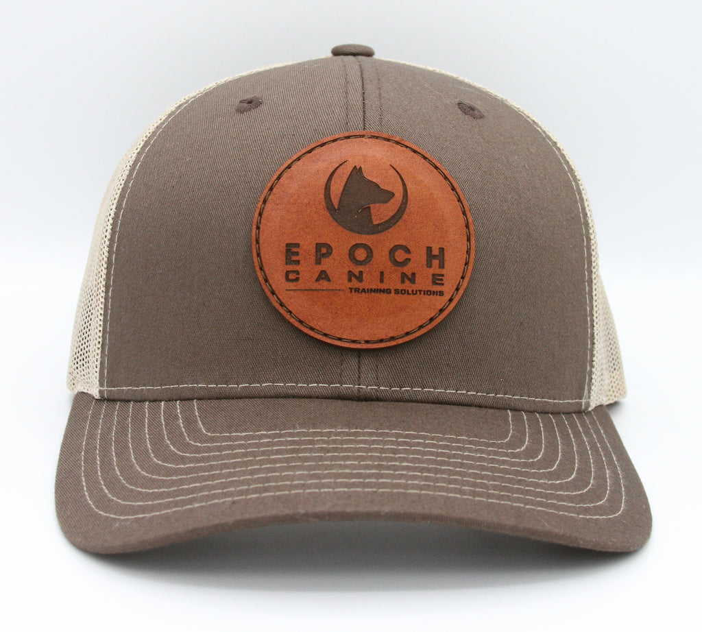 Epoch Canine Trucker Hat features adjustable sizing with a tanned leather logo in the front and a breathable mesh in the back.  Stylish headwear that everyone should have as part of their daily hat rotations!