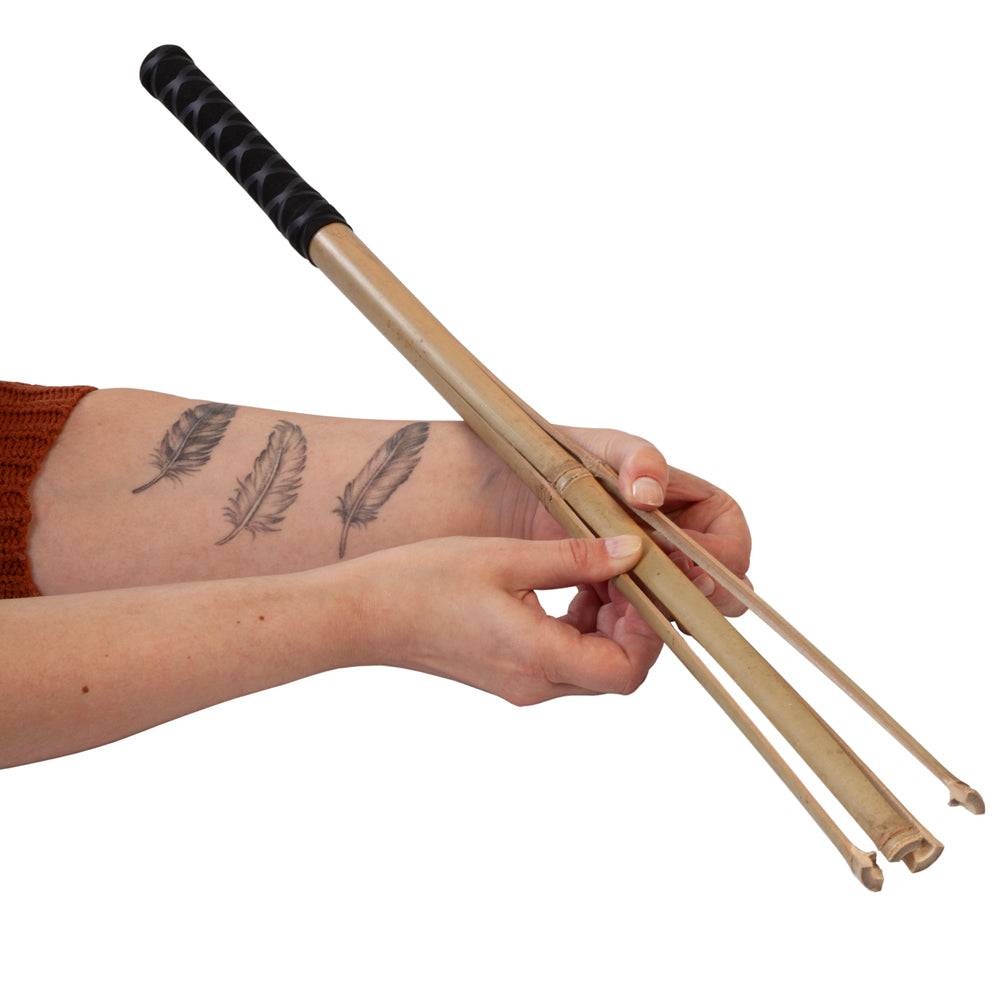 A bamboo stick for the helper, about 60 cm long. It has a comfortable and non-slip grip. It makes a distinctive noise. Used by trainers when exercising with dogs. Made by hand with great care to ensure proper use during training.