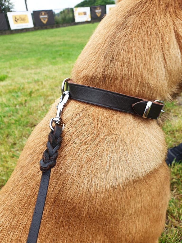 The set - a brown leash and collar for puppies is made of high-quality waxed leather. The width and type of leather used provides a firm and comfortable grip, which gives the user confidence in leading the dog. The fittings used are chrome-plated and the lanyard ends are braided. Reliable quality and perfection of workmanship allow obtaining one hundred percent user satisfaction.