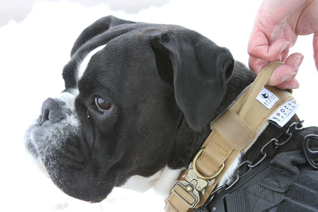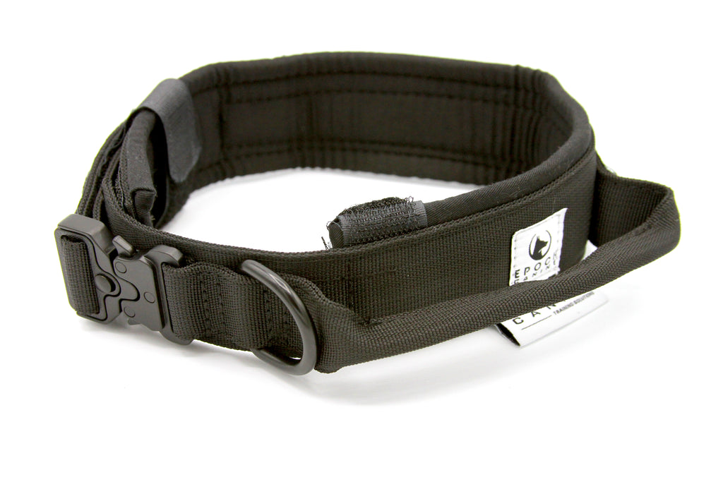 The Epoch L1 Adventure/Tac Nylon Collar & Leash Set is the perfect set up for those that love to get out and enjoy the outdoors with their furry companions. The Epoch L1 Leash features a magnetic clasp for easier connection to the collar's metal D-ring. The leash also has two enriched handle positions and a reflective elastic cord. The Epoch L1 Collar features a heavy-duty metal buckle and D-ring for leash attachment. A double-woven handle. A padded inner lining for comfort, Exterior Velcro area for patch and name tag placement.