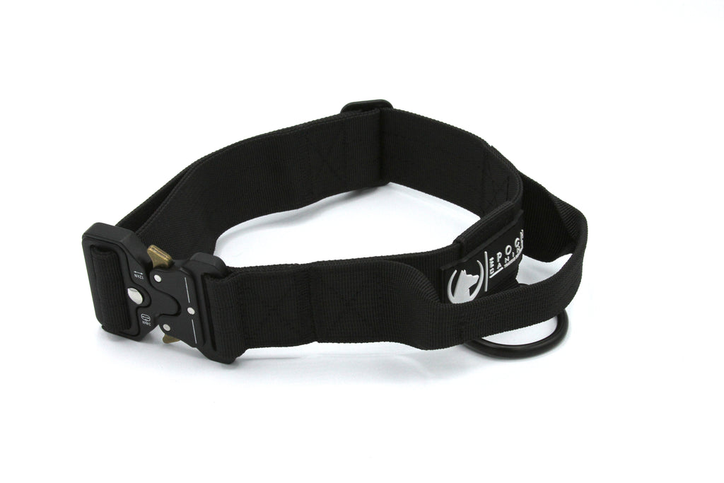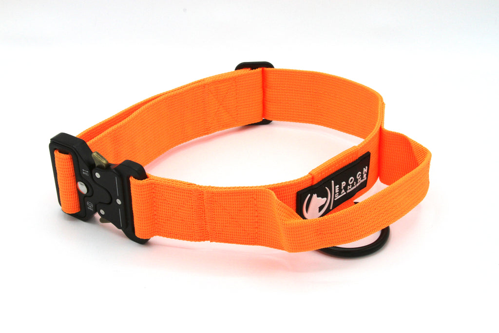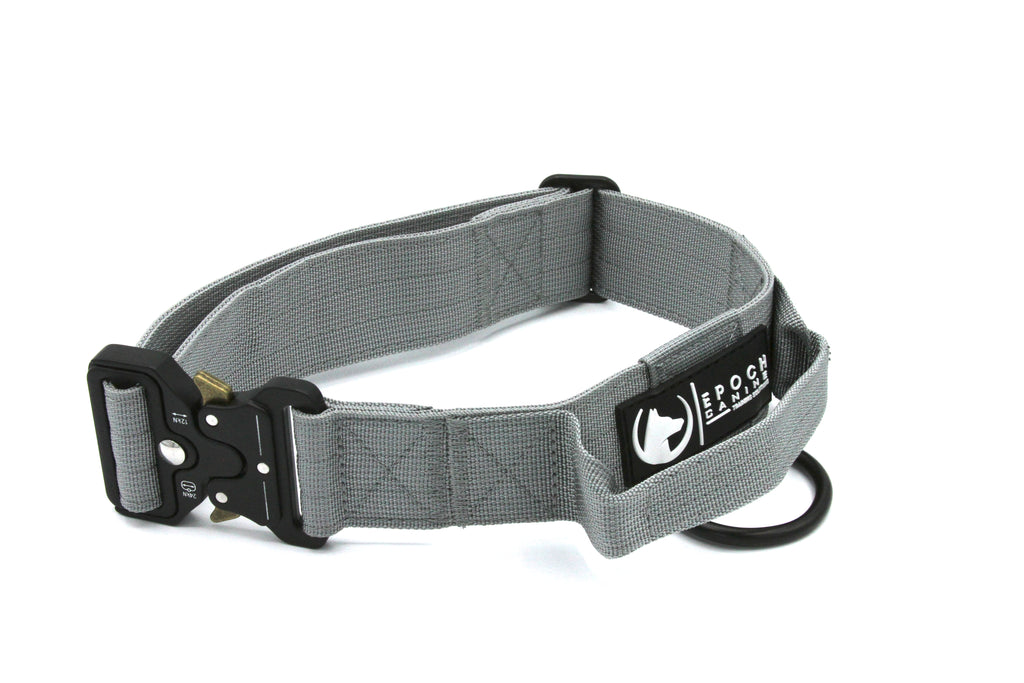 The Epoch Canine Nylon Collar features a heavy-duty, quick-snap metal buckle and an additional handle and D-ring for easy connection to a leash as support for managing the position of your dog. It comes in three colors, Black, Grey, and Orange. This collar is great for dog training, agitation work, hunting, or hiking, and enjoying the outdoors. Extremely durable, while remaining lightweight, this is the perfect all-around collar.