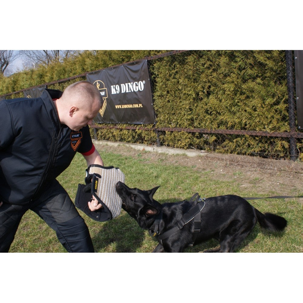 FRED is a medium-hard training sleeve for a helper, we will make of jute reinforced with polypropylene. Perfectly protects the hand from the wrist to the elbow. Fits right and left hand. Commonly used by trainers to develop defense or biting skills. Made by hand with high accuracy and care in accordance with European standards, it provides the possibility of training for years.