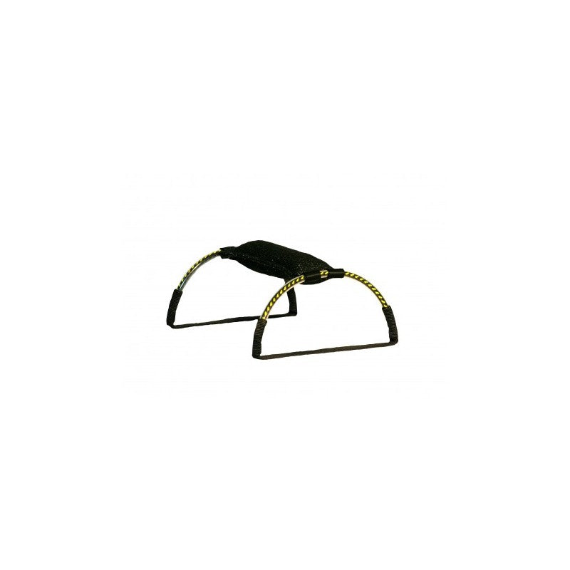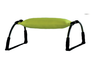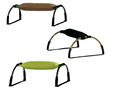 Half of the handles are made of tubular fabric and nylon strap, so that the biting area can stand stably at a height of approx. 14 cm. The biting area can be moved to an angular position on the tubular fabric. Dimensions: 9 x 27 cm